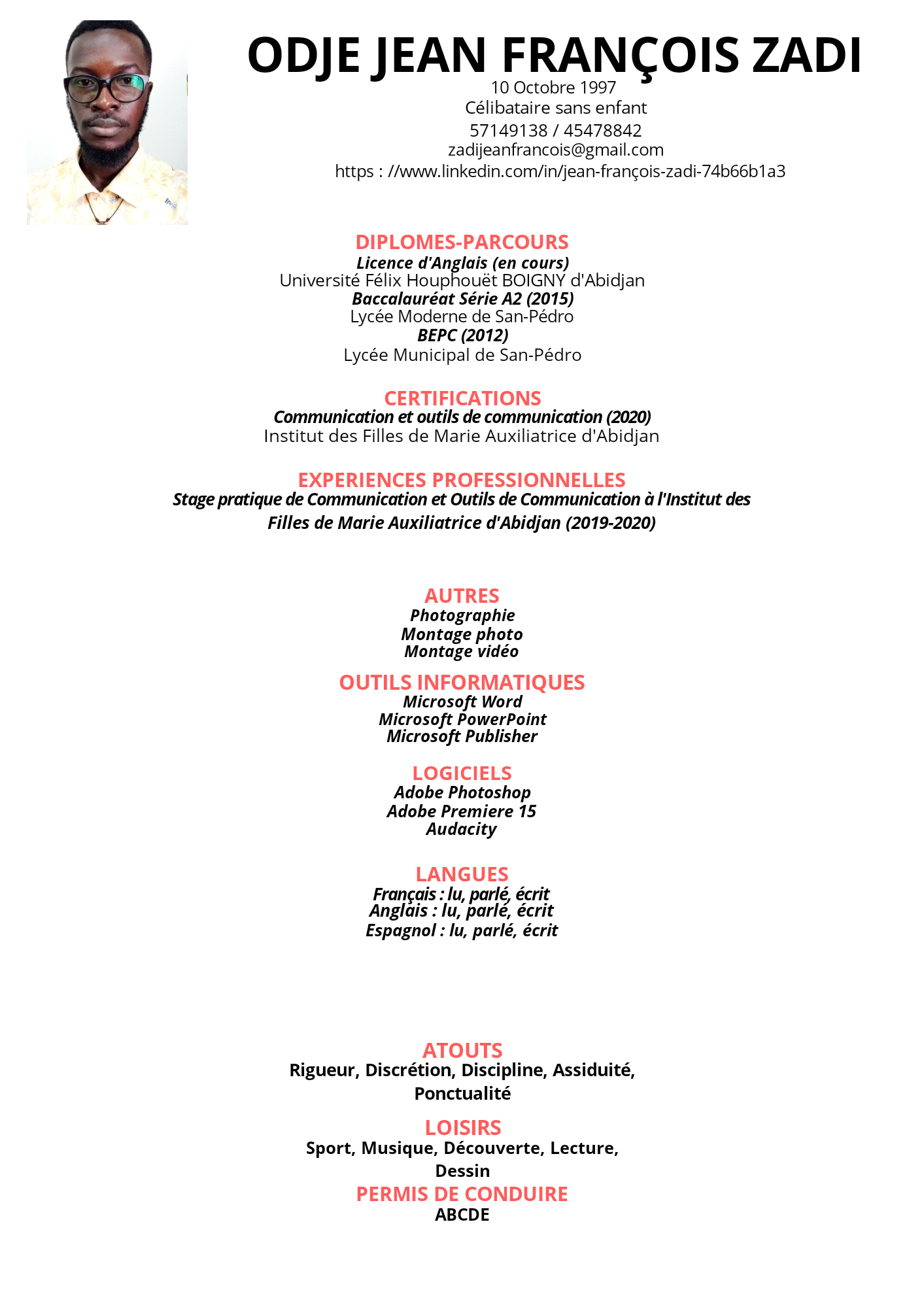 Je suis un travailleur passionné et rigoureux ; le silence et la discrétion sont les autres points forts sur lesquels je fonde mon professionnalisme. Les challenges me maintiennent éveillé.
